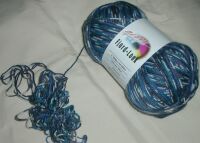 毛糸屋さんのページで見たのとラベルが変わっていて、メーカーがわかるようなことが書いてありません。割に光沢のある糸です。内側から糸を出そうとしたら、またごぼっと出てしまいました。